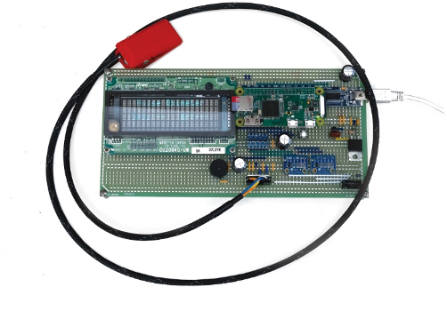 图13.基于树莓派Zero的脉搏血氧仪原型。MAX30102 SpO2传感器位于图片左上角所示的指夹中。