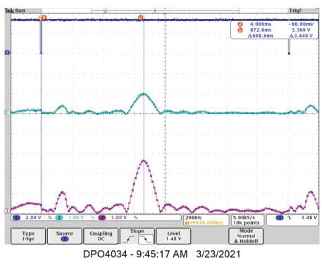 最后,我们采用Arm®微处理器(运行裸机操作系统),设计了一个血氧仪原型。使用树莓派Zero作为计算机平台,MAX30102集成电路用作传感器。操作系统和滑动窗口DPT采用标准C语言实现。图13即为该原型。整个血氧仪由USB 3.0连接供电。两个数模转换器根据监控软件的判断,通过带状电缆将数据发送到Tektronix DPO-4034示波器,在其中绘制图像。然后,图像通过网络连接发送到台式计算机。图15为大约9秒的时间内从单个受试者获得的结果,之后用10秒的时间来填充递归缓冲区。
