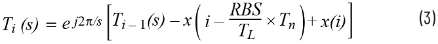 其中,RBS为递归缓冲区大小,TL为最长周期的长度,TN为当前正在处理的基元的周期。这样做可以使每个基础周期的起始和终止纵坐标值相同。周期s从最小周期延伸到所选的最大周期,以覆盖采样数据中的周期。该实现利用了一组基函数,这些基函数代表了图2中复正弦波的增量相位角。