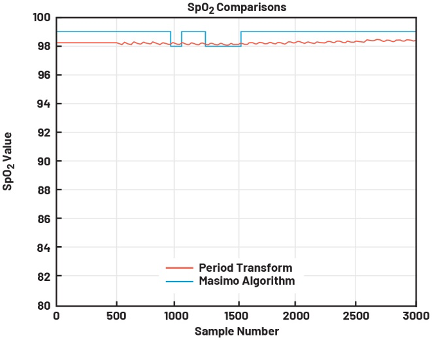 正是出于这些原因,我们才开展了这项研究。DPT算法采用的变换只需少量样本,但却能实现准确的测量,许多挑战因此迎刃而解。在周期域内进行测量,并按采样周期将每个周期点分隔开来,便能提供所需的分辨率。然后,我们可以利用来自DPT的周期和幅度信息直接计算心率和血氧饱和度,而无需返回时域。