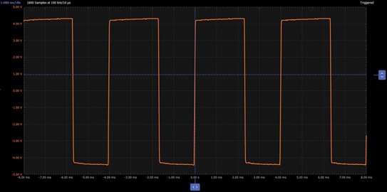 请注意,输出信号的占空比约为50%,而低/高电压值往往达到正/负电源电压值。
