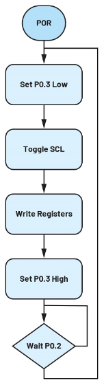 一旦在上电时使用MAX77714.hex进行编程,P0.3就会置为低电平,以将MAX77714 I2C线连接到MAX28200,并使用新值对SD0和GPIO4寄存器进行编程(图13)。