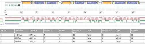 MAX28200是一款低功耗、小尺寸(1.7 mm × 1.8 mm)RISC微控制器,带有多种外设。对于此应用,我们使用两个GPIO引脚作为位触发I2C主机。
