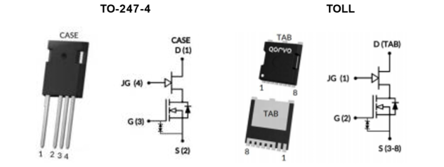 Combo JFET 将一个 SiC JFET 和一个低压Si MOSFET 集成到一个封装中,SiC JFET 和低压 MOSFET 的栅极均可使用。