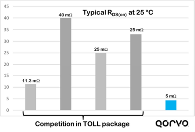 低 RDS(on):安森美 Combo JFET器件采用 SiC JFET 技术,单位面积 RDS(on)显著降低(Rds∙A)。 该器件采用灵活、可从外部配置的cascode结构(SiC Combo-FET)来实现常关操作。在 安森美 SiC Combo JFET结构中,低电压 Si MOSFET 对总 RDS(on)的贡献不到 10%。图 1 显示了 TOLL 封装中 RDS(on)的对比。