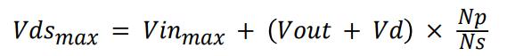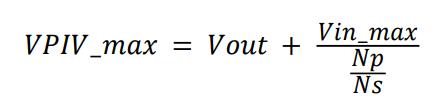 由于这些元件通常会因变压器漏电感而产生振铃,因此根据经验,实际值应比方程式 4 和方程式 5 预测值高出 10% 至 30%。如果 Vds_max 高于预期,则减小 Dmax 会降低 Vds_max,但 VPIV_max 会增加。确定哪个元件电压更为关键,并在必要时再次迭代。