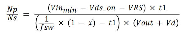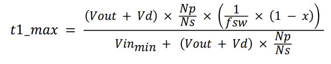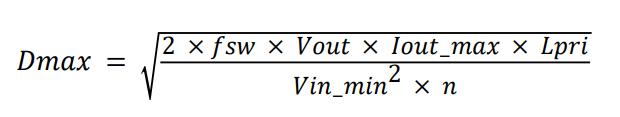 如果所选电感比方程式 7 中所示的更低,则根据需要进行迭代,以增大 x 并减小 Dmax,直到 Np/Ns 和 Lpri_max 等于所需值为止。