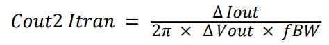 输出电容通常选择为方程式 18 或方程式 19 中的较大者,根据纹波电压和等效串联电阻(方程式 18)或负载瞬态响应(方程式 19)计算电容: