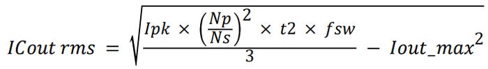 变压器初级均方根电流与方程式 10 中的 FET 均方根电流相同;变压器次级均方根电流如方程式 27 所示。变压器磁芯必须能够处理 Ipk 而不会饱和。您还应考虑磁芯损耗,但这超出了本文的讨论范围。
