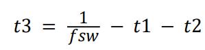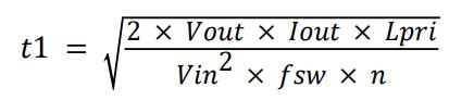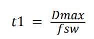 开发人员在开始设计时需要了解几个关键参数以及基本电气规格。首先选择开关频率 (fSW)、所需的最大工作占空比 (Dmax) 和估算的目标效率。然后,方程式 1 按如下方式计算导通时间 t1: