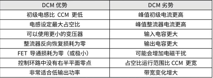 表1 与 CCM设计相比,DCM反激式设计既有优点,也有缺点