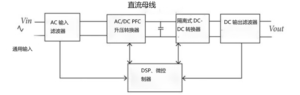 工业充电器由PFC前端电路与带恒压恒流控制的隔离式DC-DC变换级组成。(图2)
