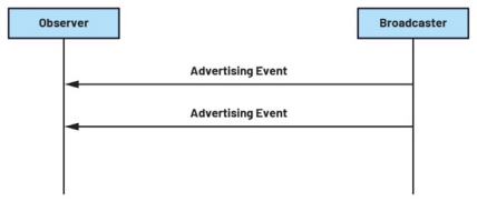 GAP根据BLE设备的活动状态为其提供不同的角色。当不需要连接时,BLE设备可以充当广播者或观察者。广播者是一种在邻近范围内宣告自身存在的设备。它主要利用链路层的广播者角色发送广播。观察者与广播者相反,它利用链路层的扫描者角色扫描相关区域,以接收来自附近设备的广播。在现实生活中,广播者的例子有BLE信标,而观察者的例子有收集数据的BLE集线器。参见图12。