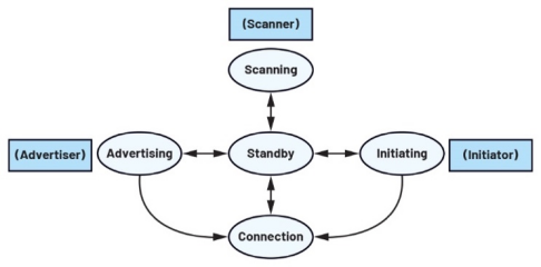 - 在发起状态下,链路层(充当发起者)监听来自广播者的数据包,并响应广播包,向广播者发起连接请求。