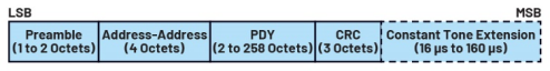 - 恒音扩展(CTE)由一串持续调制的非白化1序列组成,通常情况下是选择性使用的。CTE对于BLE的测向特性非常重要。