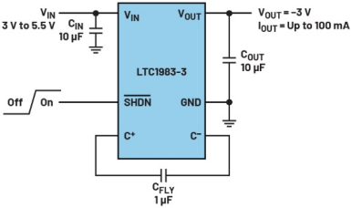 图4.100 mA、-3 V输出的DC-DC转换器典型应用电路。