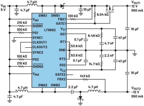 LTM8049是另一个不错的选择,其输入电压最高可达20 V,两个输出端的输出电压最高可达+24 V,最低可至–24 V。