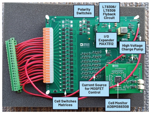 本文(本系列的第三部分)重点介绍均衡架构。设计方案中包括一个开关矩阵主板、两个反激电源板、一个电池管理系统(BMS)控制板、一个微控制器单元(MCU)评估板和一个isoSPI隔离通信评估板。以下章节将简要介绍每个硬件板的功能。