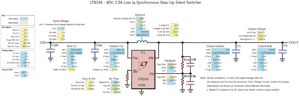 升压转换器是一种将输入电压提升至更高输出电压的电源拓扑。升压转换器在微控制器和微处理器中不太常见,但在需要较高内核电压的应用中可找到其身影。在图5中,升压转换器用于提供高压精密放大器的24 V输出轨。