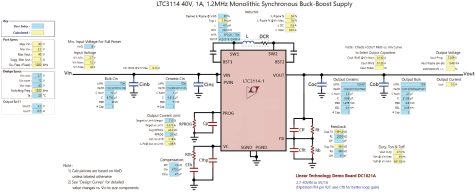 图6.降压-升压转换器LTC3114-1配置为提供3.3 V输出电压。