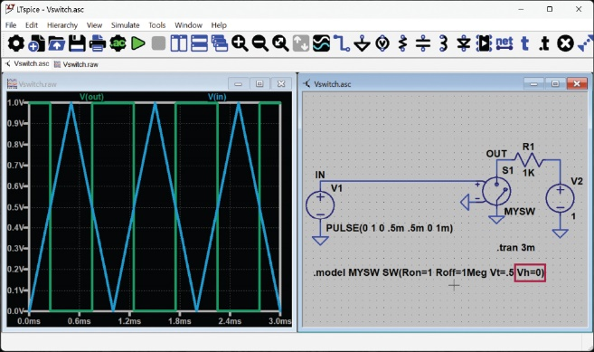 为探索开关在Vh改变时的行为,我们可以对Vswitch.asc示例进行一些更改。