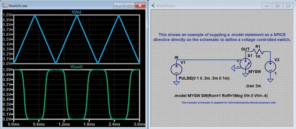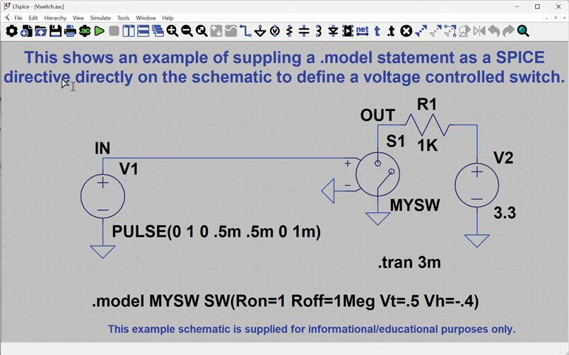 使用此处提供的简单示例进行实验,或者选择File(文件)→Open Examples(打开示例)→Educational(教学)→Vswitch.asc。参见图5。