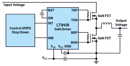 图2.LT8418,一款用于GaN开关的100 V半桥驱动器。