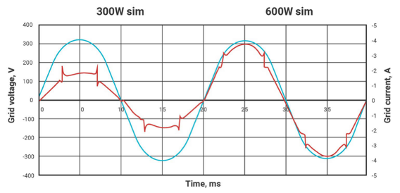 模拟和测量之间的完美吻合如图 3-2 所示。在 600W 的满载条件下测得的总谐波失真仅为 2.6%,远低于并网微型逆变器 3% 的要求。