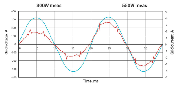在实验室的各种负载条件下对转换器进行了测量。图 3-4 显示转换器交流输出的时间域测量值。