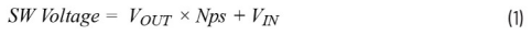 当电源开关导通时,变压器初级电流将增大,最高达到峰值限流值(每个IC有不同的限流值),此时开关关断。开关节点处的电压上升至如下电压值:输出电压(VOUT)乘以初级-次级匝数比(Nps)加上输入电压(VIN)。