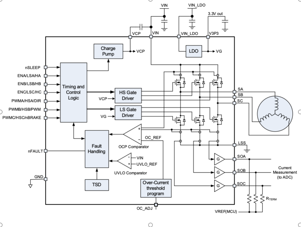 | 过流保护(OCP) | 实时监测相电流,阈值可调 | 防止电机堵转烧毁 |