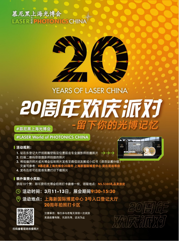 为庆祝展会20周年,特此为远道而来的光电友人们准备了纪念打卡活动。