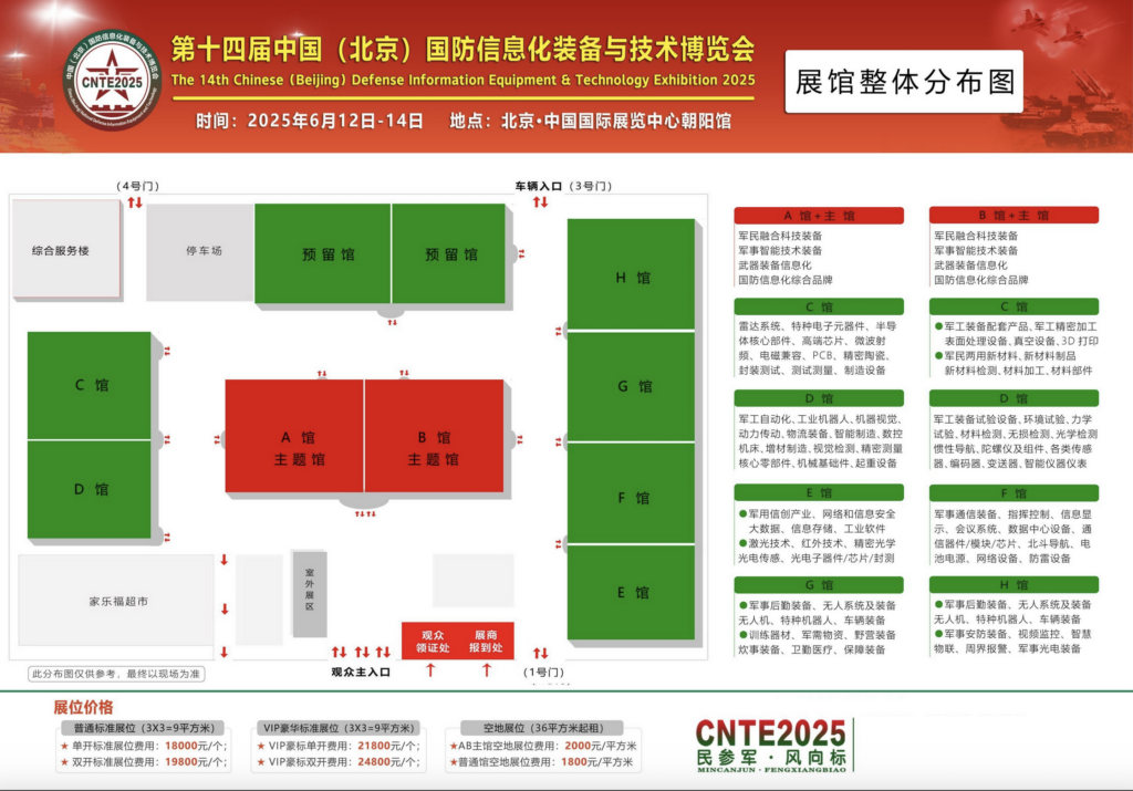 作为中国唯一 一个以“国防信息化”命名的展会,中国(北京)国防信息化装备与技术博览会,在中央军委装备发展部、国防科工局的大力指导下,由中国和平利用军工技术协会、全国工商联科技装备业商会、中国航天质量工业协会、北京市军民融合协同创新协会、深圳国防科技工业协会共同主办,研祥高科技控股集团、贵州航天电器赞助、电子科技集团、航天科技集团、航天科工集团、航空工业集团、船舶集团、兵器工业集团、航空发动机集团、电子信息产业集团、北京航标时代检测认证有限公司支持,北京企发展览服务有限公司承办的“2025第十四届中国(北京)国防信息化装备与技术博览会”将于2025年6月12日-14日在北京.中国国际展览中心朝阳馆召开。本次展会总规模45,000平方米,吸引预1000家领军企业同台竞技,集中呈现国防信息化产业链:军工电子装备、特种元器件、武器装备智能化、雷达系统、特种计算机、工业自动化、工业机器人、智能制造、军工配套及精密加工、新材料及制品、装备试验与测试、网络安全、信息通信、无人装备、后勤保障装备等几十个专业,涵盖了民营企业参与国防现代化建设的主要领域。