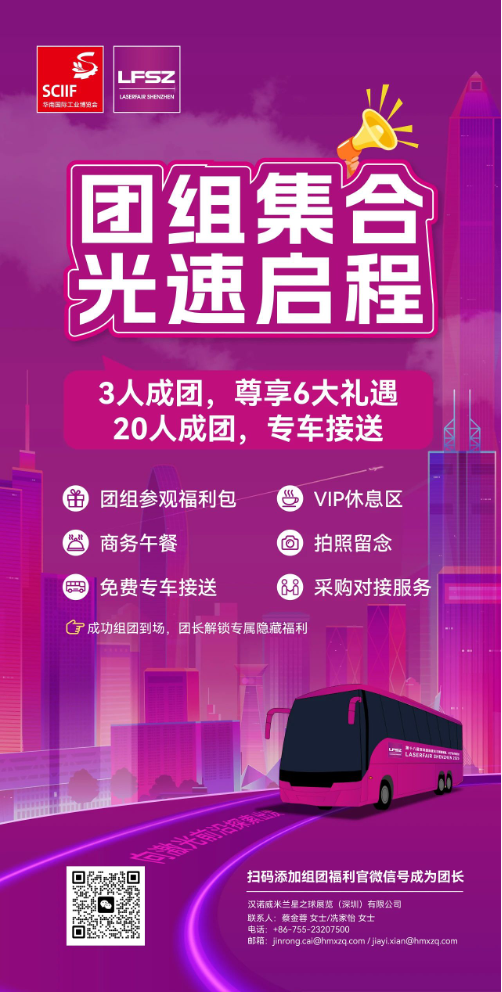 为回馈广大观众长期以来的支持,2025深圳激光展精心筹备了专属福利。在2025年6月2日18:00前完成预登记,您就能在展会现场领取咖啡券、地铁票,还有一份神秘礼物。不仅如此,预登记组团还有额外惊喜:邀请3人,团长可获LED护眼台灯;邀请5人,能得定制雨伞;邀请10人,更有定制背包奉上。若组团人数达到20人,团队将尊享六大福利,包括参观福利包、商务午餐、免费专车接送、专属观众休息区、团体拍照留念,以及采购对接服务。别再犹豫,立即预登记,率先开启这场充满惊喜与机遇的激光行业精彩之旅!
