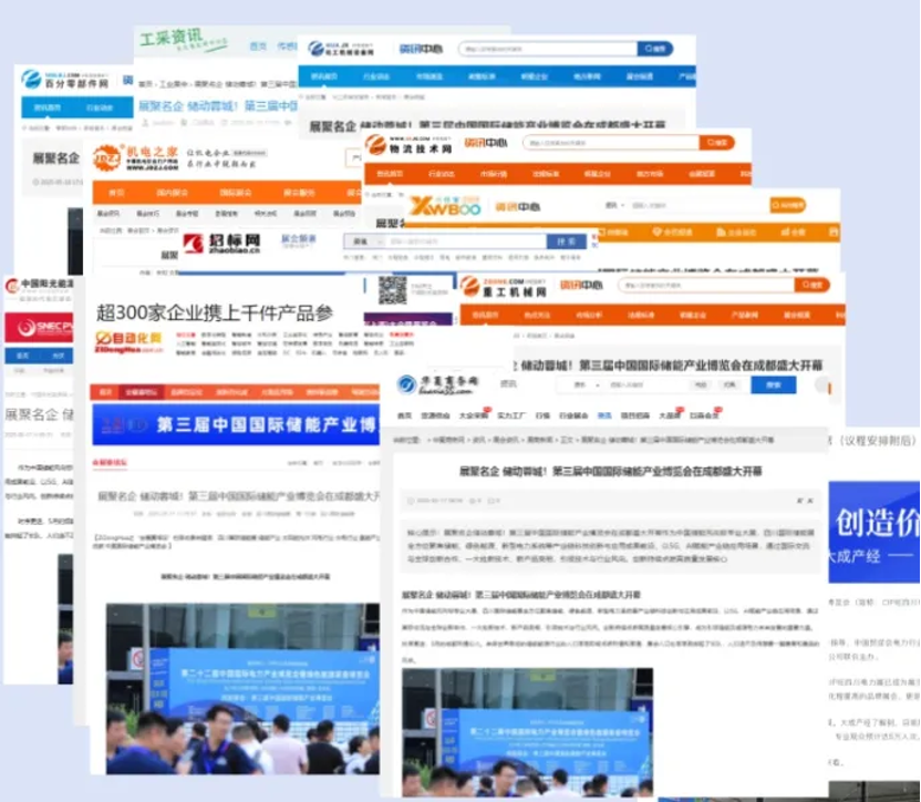 北极星储能网、中国网、中国发展网、中新社、四川广播电视台、四川新闻网、四川经济日报、成都电视台、成都日报、华西都市日报、封面新闻、凤凰网、中国阳光能源网、招标网、机电之家、自动化网、工采网、兴旺宝、华夏商务网、百分百零部件、化工机械设备、重工机械、物流技术、等权威媒体对参展企业进行了采访报道。