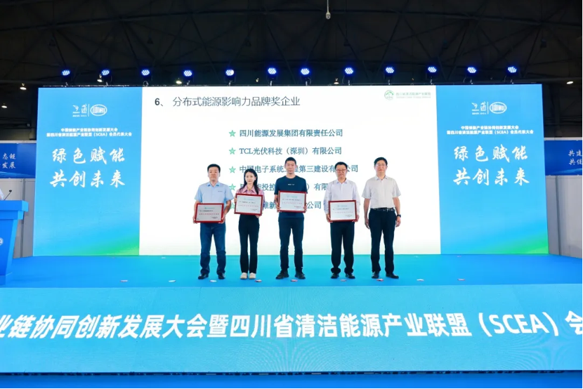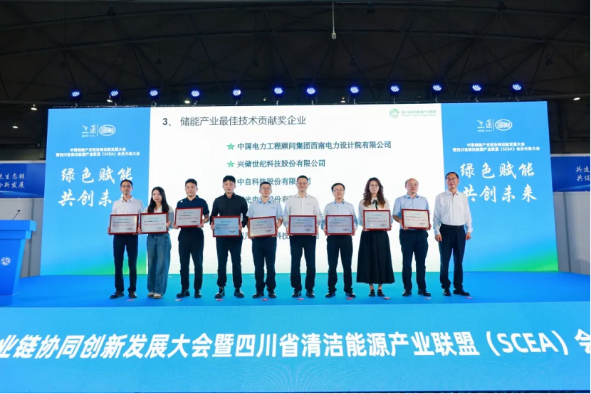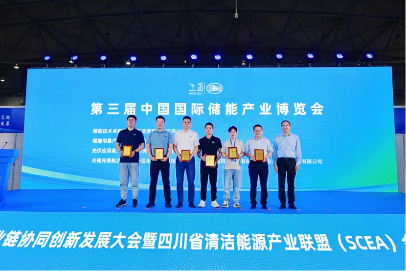 本届博览会期间还同时举办第三届中国国际储能产业博览会及四川省清洁能源产业联盟会员颁奖仪式,国网四川综合能源服务有限公司、华电四川公司、晟天新能源、国家能源集团四川发电有限公司、航微能源、中电建四川工程公司、成都振威世展展览有限公司等数十家企业获奖。广东迪度新能源有限公司获得储能技术卓越奖,成都西电中特电气有限责任公司获得储能明星产品奖,光储充领航企业奖获奖企业为新亚东方电能科技有限公司、郑州众智科技股份有限公司、杭州超翔科技有限公司,光伏应用奖获奖企业为成都忠合创能金属制品有限公司。通过现场奖项颁布,树立储能技术和应用的创新典范,展示储能领域年度内创新技术、产品的应用,推动储能全产业链转型升级与高质量发展。