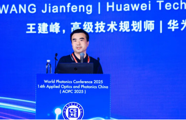 华为技术有限公司王建峰高级规划师以《人工智能时代光通信中的光电子集成趋势》为题,指出AI算力爆发催生算力网络需求,光通信光电子集成向系统级跃迁。DCN光模块正朝更低功耗、更高带宽密度演进,通过硅光集成等技术破解传输瓶颈,CPO/OIO是光引擎关键技术。
