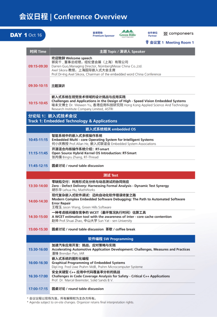 以上三个分论坛的演讲日程已公布。敬请关注微信公众号embeddedworld-china了解。