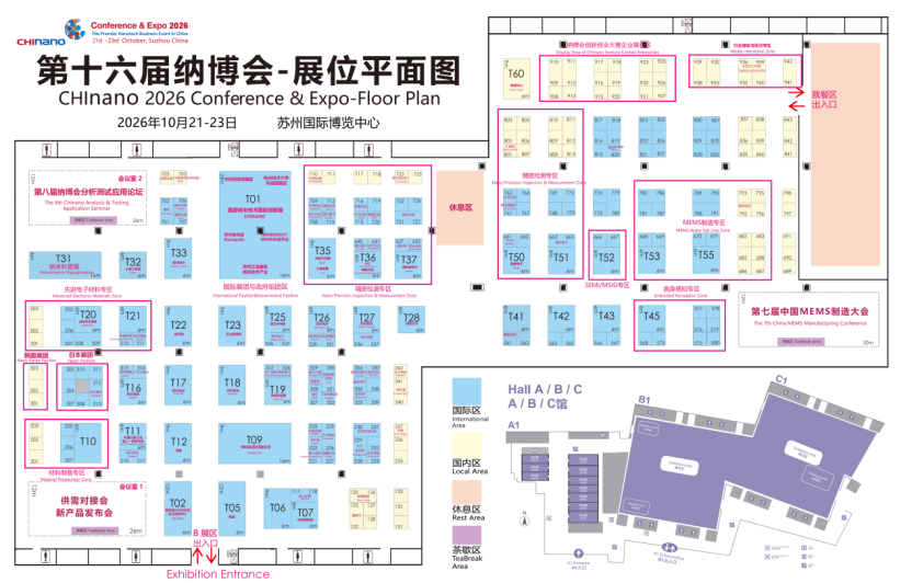 本届纳博会重点聚焦MEMS器件及工艺、三代半导体、纳米压印、柔性电子、原子级制造、纤维/凝胶材料、光电/激光、分析检测、计量校准、大健康等领域等产业领域,同期举办多场专业分论坛。