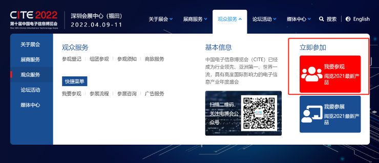 目前CITE2022的观众预注册渠道全面开启。为了便于您及时、准确的收到展会信息,并在现场省时、省力的进入会场,我们强烈建议您提前做好观众预注册工作!