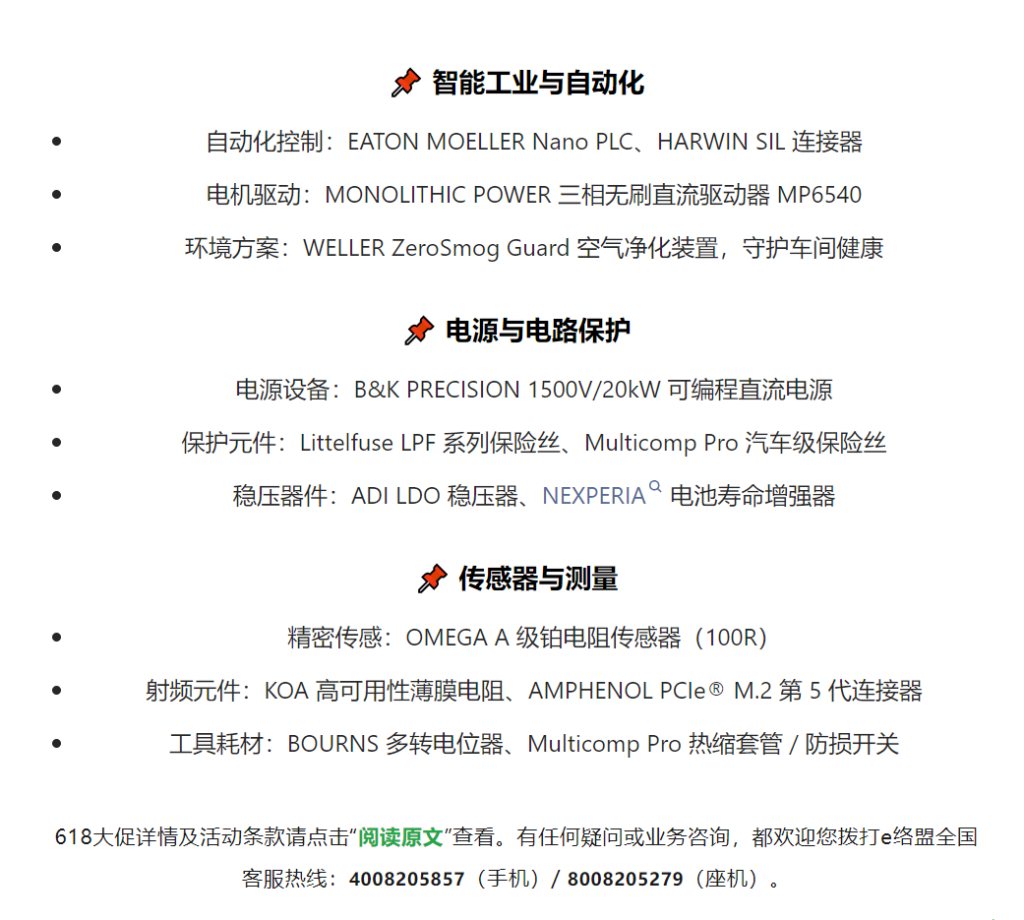 e络盟618惊喜狂欢季!三重礼遇不容错过! 618惊喜狂欢季 三重礼遇不容错过! 活动时间:即日起至2025年6月27日 23:59 截止 活动内容: 通过e络盟官网(https://cn.element14.com/june-sales?CMP=e14c-eeany) 在线下单满 1,200 元, 立享限时 15% 优惠。优惠券代码: 618CN25成功使用 618CN25 券码下单后,即可获得 神秘礼品一份(数量有限,先到先得)活动期间,大中华区折扣后单笔订单总额排名前五的客户,即可获得额外惊喜好礼一份 赞 1 加群 分享