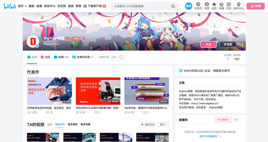 DigiKey 的 B 站账号始于 2020 年 4 月,上线头两个月便收获 1 万名粉丝。目前该账号已发布 600 多个视频,观看量突破 600 万次,并与社区保持着活跃的互动。
