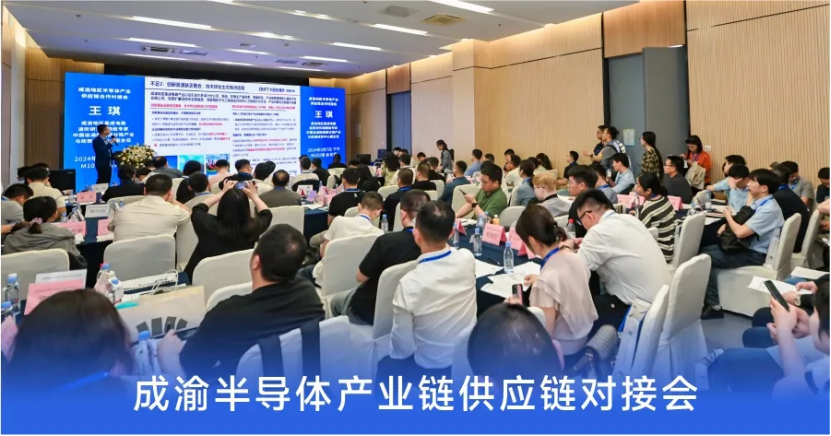 2024年5月7日召开了“渝地区半导体产业供应链合作对接会”。汇聚川渝两地半导体上下游左右岸企业、政府部门、高校院所、创新平台、园区载体、金融机构等300余人齐聚交流和对接。