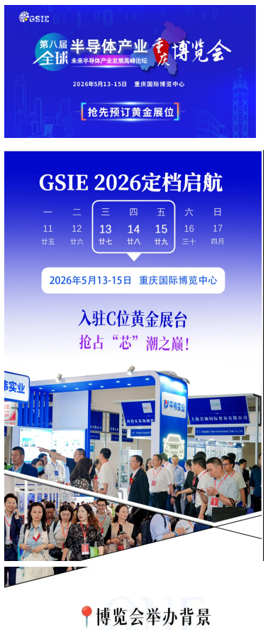 第八届全球半导体产业(重庆)博览会将于2026年5月13-15日在重庆国际博览中心举行。此次博览会以“新时代·创造“芯”未来”为主题,规划展出面积40000㎡,预计吸引1000家知名企业参展,专业观众35000人次到场参观洽谈,共同助力中国半导体产业高质量发展。