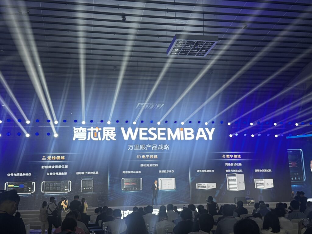 2025 年 10 月 15 日,2025 湾区半导体产业生态博览会(湾芯展)在深圳开幕,电子通记者了解到深圳国资背景企业新凯来携旗下子公司重磅参展,其核心子公司深圳市万里眼技术有限公司发布的 90GHz 超高速实时示波器,以 "中国第一、全球第二" 的性能惊艳全场,成为展会焦点。
