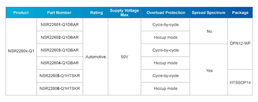 NSR2260x-Q1系列提供两种封装选项,兼顾高功率密度设计与散热性能: