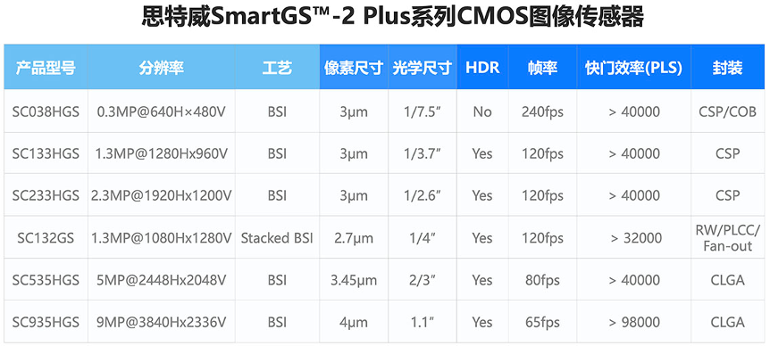 此外,思特威SmartGS™-2 Plus系列更有大靶面产品SC535HGS(5MP)与SC935HGS(9MP),具备高分辨率与出色成像性能,可满足工业检测相机及ITS智能交通摄像头等多元领域的高性能影像需求。