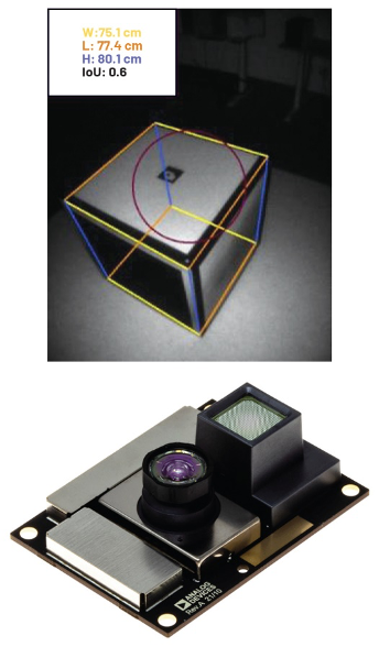 图9.箱子尺寸测量应用的示例(上图使用下图中的ADTF3175 ToF模块)。