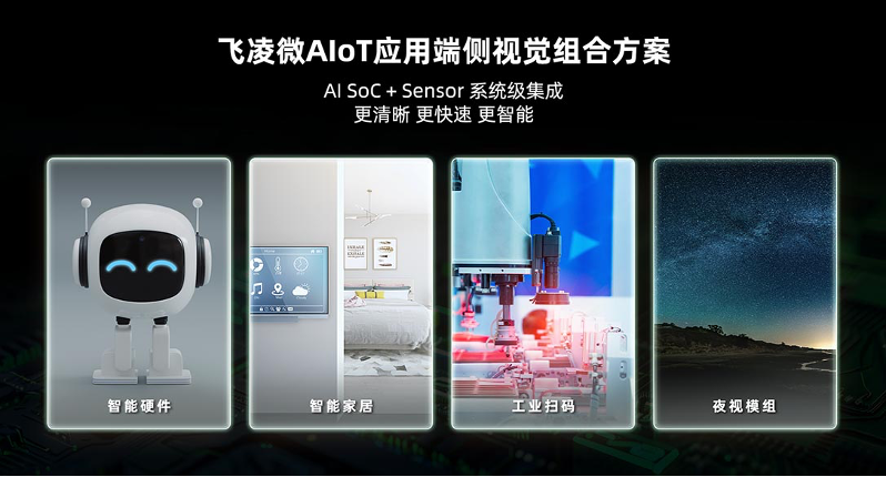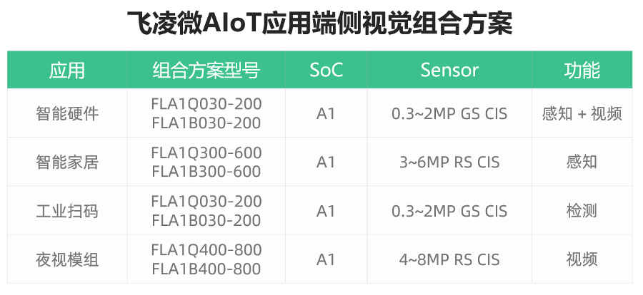 为满足智能终端设备的性能升级以及市场需求,飞凌微面向消费和工业级智能视觉模组提供基于A1芯片产品的一系列端侧AI SoC + Sensor组合方案,助力客户端打造小型化、高性能的多元智能视觉终端应用。