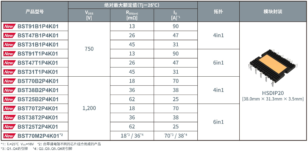 中国上海,2025年4月24日——全球知名半导体制造商ROHM(总部位于日本京都市)今日宣布,推出4in1及6in1结构的SiC塑封型模块“HSDIP20”。该系列产品非常适用于xEV(电动汽车)车载充电器(以下简称“OBC”)的PFC*1和LLC*2转换器等应用。HSDIP20的产品阵容包括750V耐压的6款机型(BSTxxx1P4K01)和1200V耐压的7款机型(BSTxxx2P4K01)。通过将各种大功率应用的电路中所需的基本电路集成到小型模块封装中,可有效减少客户的设计时间,而且有助于实现OBC等应用中电力变换电路的小型化。